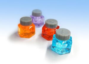 Da liegt dieses kleine Tintenfässchen in eurer Hand, die Fläche auf eurem Tableau ist endlich groß genug, und mit einem einzigen Zug kippt die Partie von ruhigem Puzzeln in einen kleinen Punkteschub. Genau darin liegt der Reiz von „Ink“. Das Spiel gibt euch erst das Gefühl, ein hübsches, fast schon entspanntes Muster aus Farben zu bauen, und zeigt dann sehr schnell, dass unter dieser freundlichen Oberfläche ein Wettlauf mit Timing, Raumgefühl und kleinen Gemeinheiten steckt. Die Grundidee trägt das Spiel ziemlich souverän. Ihr erweitert euer eigenes Gemälde mit Plättchen, versucht große zusammenhängende Farbflächen zu bilden und dort eure Tintenfässchen unterzubringen. Das ist thematisch angenehm greifbar, ohne sich in großer Erzählung zu verlieren. Besonders schön ist, dass das Material diese Idee nicht nur illustriert, sondern tatsächlich mitträgt. Die kleinen Fässchen haben Charakter und das passt sehr gut zu einem Spiel, das über Form, Farbe und Fläche funktioniert. Auch die Gestaltung mit dem Federkiel-Rondell und den intensiven Farbflächen hat sofort Wiedererkennungswert.
