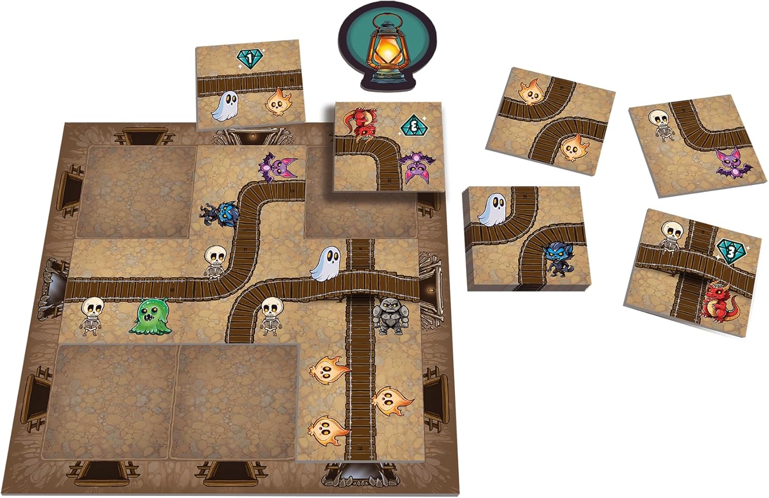Stellt euch vor, tief unter der Erde ist es den Monstern langweilig geworden. In einer verlassenen Mine beschließen sie deshalb, etwas Unterhaltung zu schaffen. Eine gruselige Geisterbahn soll her, mit wilden Kurven, knarrenden Strecken und möglichst vielen schaurigen Kreaturen entlang der Strecke. Genau hier setzt „Massenweise Monster“ an. In diesem charmant illustrierten Legespiel helft ihr einer bunten Monstertruppe dabei, eine möglichst beeindruckende Geisterbahn durch den Stollen zu bauen. Auf euren persönlichen Spielplänen entsteht Stück für Stück eine Strecke, auf der sich unterschiedlichste Kreaturen tummeln. Skelette, Fledermäuse, Schleime und viele weitere Wesen haben dabei alle ihre eigenen Vorlieben. Manche mögen Gesellschaft, andere fühlen sich lieber allein wohl. Eure Aufgabe besteht darin, ihre Wünsche möglichst geschickt unter einen Hut zu bringen. Das Thema wirkt bewusst verspielt und leicht schräg. Statt düsterer Horroratmosphäre erwartet euch eine humorvolle Monsterwelt mit niedlichen Illustrationen. Dadurch wirkt das Spiel sofort zugänglich und lädt auch weniger erfahrene Spieler:innen ein, sich an das Puzzle zu wagen.