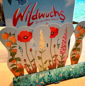 Ihr nehmt euch eine Blume, setzt einen Samen ein und auf einmal wächst nicht nur eure Wiese, sondern auch die der anderen mit. Genau dieses gemeinsame Aufblühen macht „Wildwuchs“ sofort greifbar. Das Thema ist eine bunte Wildblumenwiese, die im Lauf der Partie tatsächlich vor euch entsteht, weil fertige Blumen in kleine 3D-Aufsteller gesteckt werden. Statt abstrakter Punktejagd schaut ihr am Ende auf ein Beet, das sichtbar voller, höher und farbiger geworden ist. Autor Kasper Lapp und Illustrator Fachri Maulana verbinden ein zugängliches Naturthema mit einem sehr einladenden Look. Dazu kommen echte Pflanzenarten und passende Insektenmotive, was dem Ganzen mehr Charakter gibt als ein bloß dekoratives Blumenmotiv. Für ein Familienspiel ist das überraschend einprägsam.